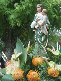 Parabéns também à florista pelos andores tão bonitos...pena mesmo os tractores. Não gosto de ver os tractores na procissão e não achei bem voltarem para o povo com as imagens dos santos. Cabia aos mordomos retirá-los e transportá-los seguramente, mas eles lá sabem o que fazem!