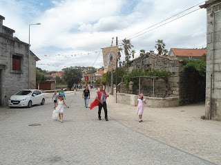 A festa para o Ti Alfredo (Senhor meu pai), tinha o seu auge no inicio da mesma, aquele momento em que uma boa descarga de foguetes anunciava a chegada da banda que percorrendo as ruas da aldeia, parava junto das casas dos mordomos como sinal de respeito e agradecimento. Passando perto, o meu pai corria ao seu encontro e do seu amigo Figueiredo que na frente comandava os tocadores e...depois a gente ficava a esperar que ele voltasse a casa pois havia que almocar pois faltava a procissao.